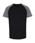 Wicking fabric. Sleeves are melange effect. Stretch. Crew neck. Short sleeve. Lightweight. Twin-needle stitching on hem and arms. BSCI certified. SEDEX certified. WRAP certified. We recommend using block out vinyl and inks.Product contains no branded neck or waist label.* Removable Kimble or looped garment tags. Inner seam label holds important product information on one label with a second label containing brand information which can be cut-away.